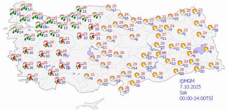 Çelik, Pazartesi günü genellikle yağışsız ve mevsim normallerinin üstünde sıcaklıkların hakim olacağını belirtti. Ancak yarın akşam saatlerinden itibaren batı bölgelerden başlayarak yurdun büyük bir kısmında serin ve yağışlı havanın etkili olacağını söyledi.